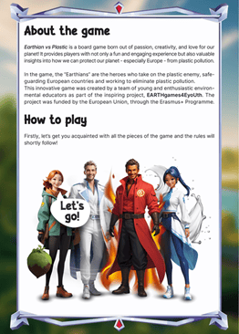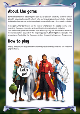 EarthGames4EYoUth games not only promote active participation but also encourage critical thinking, problem-solving, and creativity, supporting a well-rounded educational approach. Together, they form a comprehensive toolkit that complements traditional learning methods and fosters deeper understanding. Through these games, participants not only gain knowledge but also have the opportunity to debate important subjects, learn about various European environmental concepts and legislation, and most importantly, enjoy the learning process through play. The games are available in five languages including English and Polish: